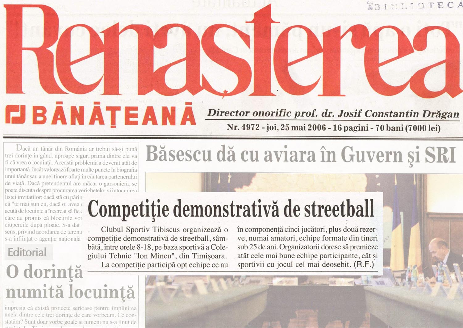 membrii Sectiei de Streetball a Clubului Sportiv Tibiscus au distribuit afise in liceele si universitatile din Timisoara precum si in locurile centrale ale orasului.