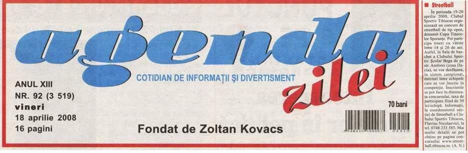 în timp ce rezultatele şi reportaje de la desfăşurarea competiţiei puteţi citi pe:![]() www.agenda.ro |